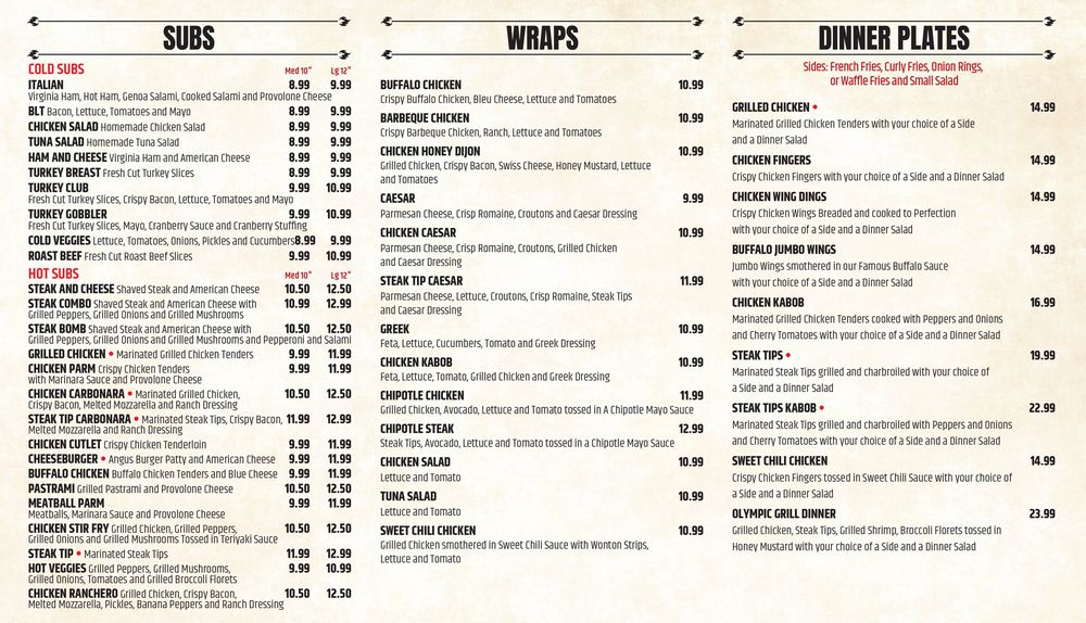 Introducing the menu at Olympic Pizza & Grill, a must-try spot for pizza lovers. Located at 15 Union St in Weymouth Town, MA, this restaurant offers a range of mouth-watering dishes for delivery or takeout. With a variety of options such as pasta, chicken, mozzarella sticks, and toasted Italian sub rolls, Olympic Pizza & Grill satisfies every craving. Customers Maureen P. and Chris Q. rave about the delicious food and excellent service. The restaurant also provides amenities like outdoor seating, TV, and happy hour specials. Whether you're dining in, taking out, or catering an event, Olympic Pizza & Grill has something for everyone. Don't miss out on the flavors and experience this cozy spot has to offer.